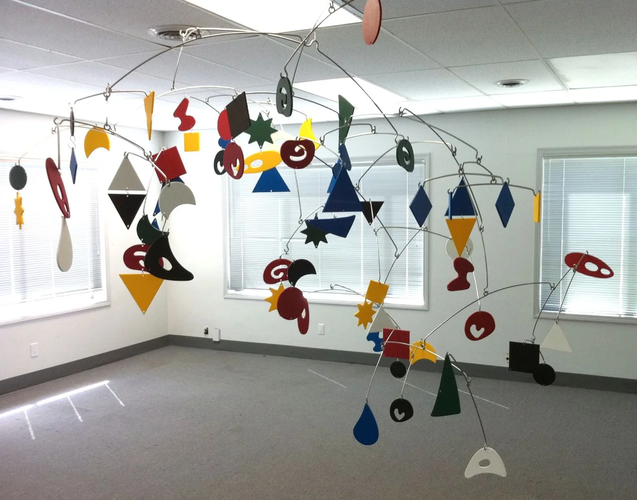 Of course, we had to test the whole thing to make sure everything balanced properly. And of course, we went overboard and hung every single arm and shape from the ceiling of a nearby vacant office. And we may or may not have squandered an entire afternoon playing with it...