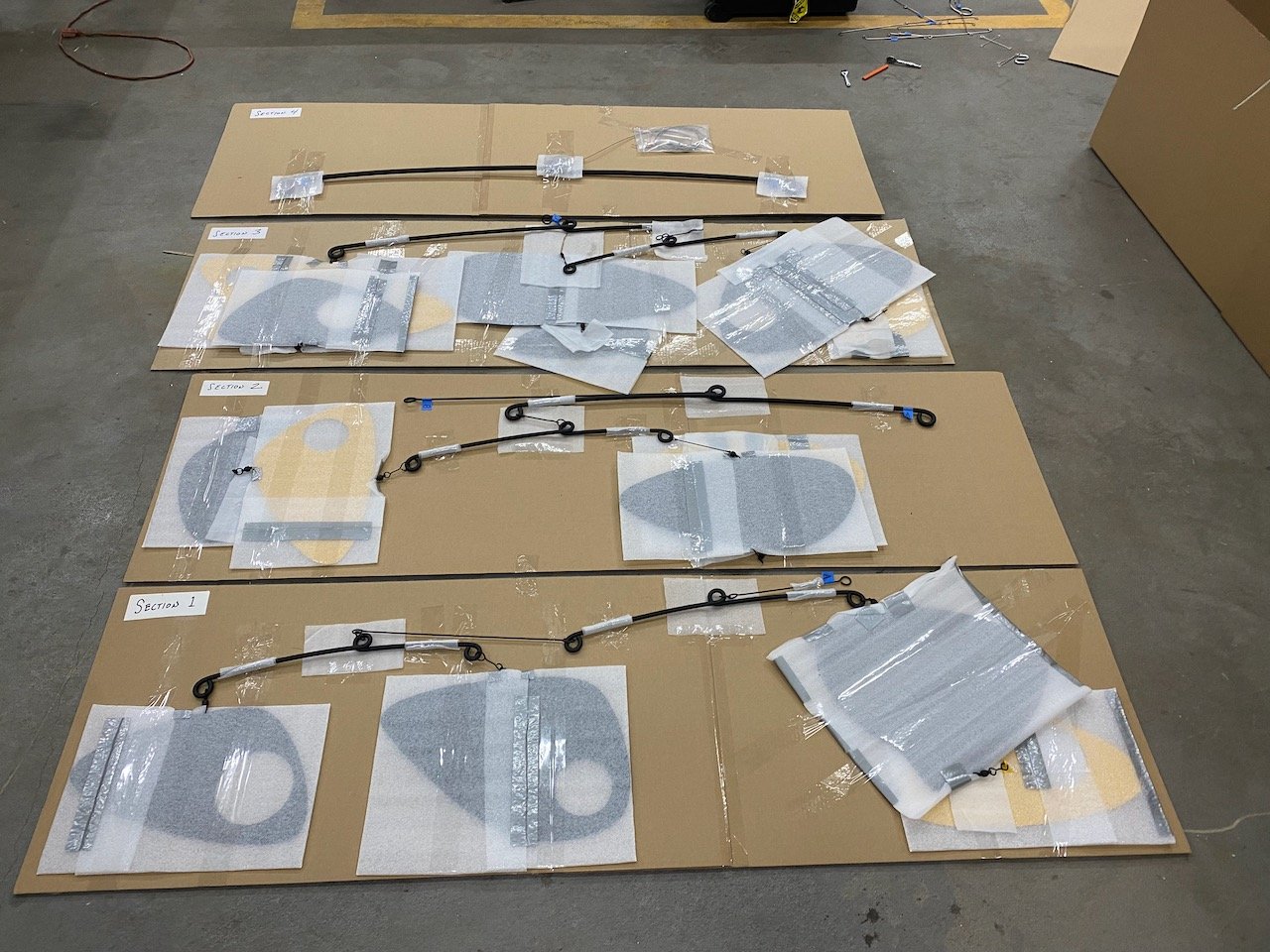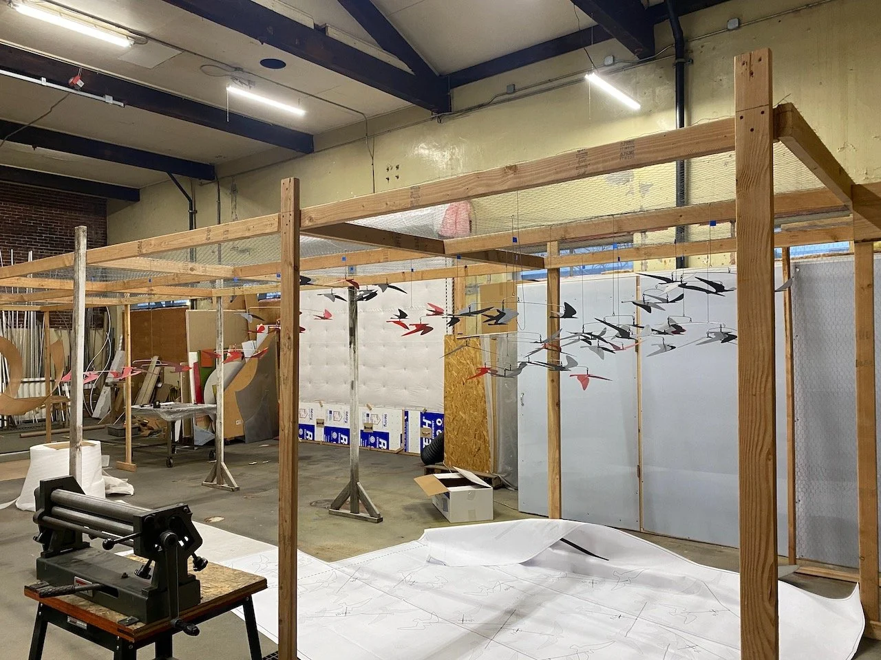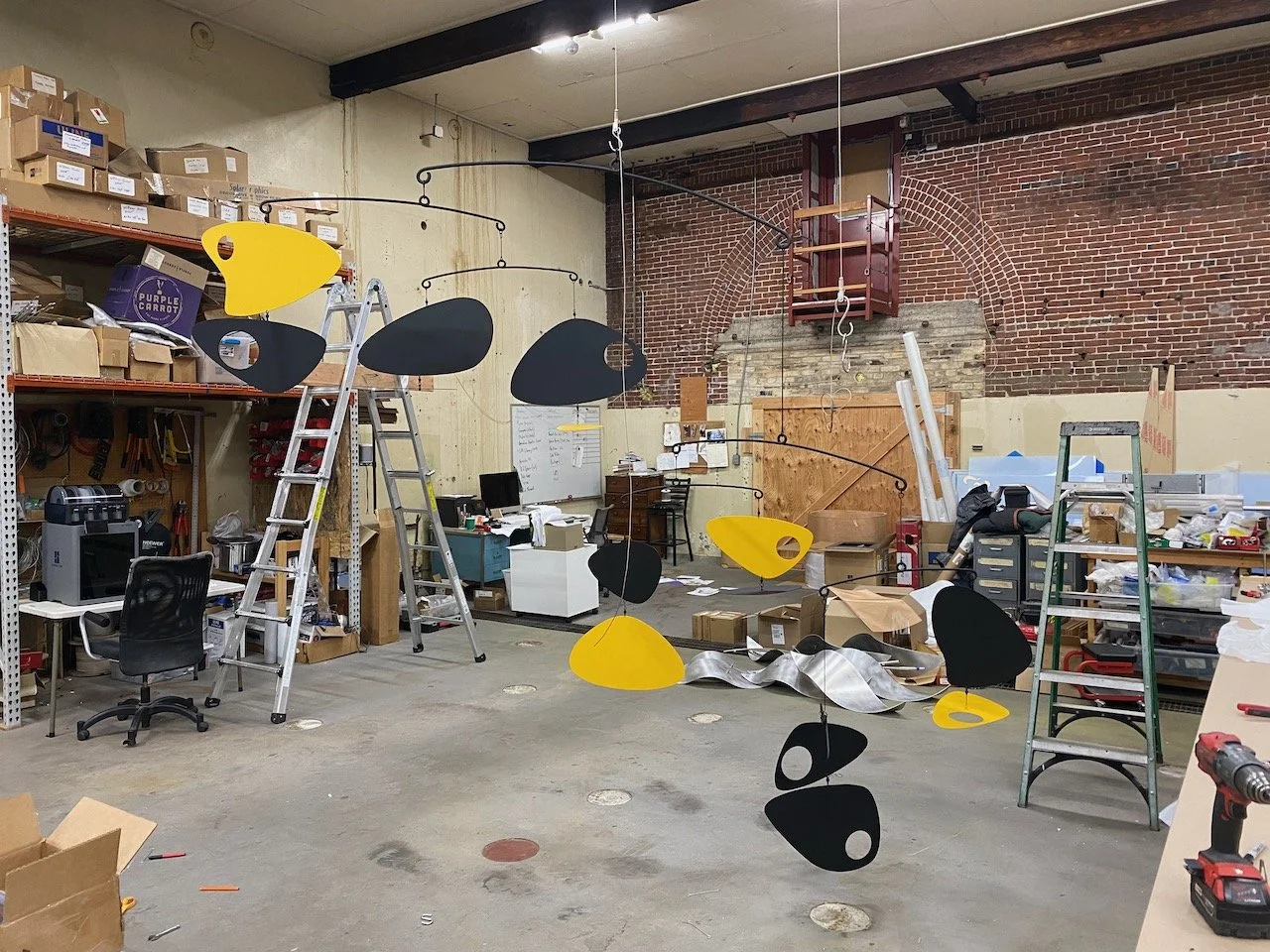 Phew, it’s been a full December! Matt has spent a chunk of winter break getting the two mobiles for the Portuguese architecture firm completed and shipped. Here they are in the shop. We can’t wait to see pictures of them installed!