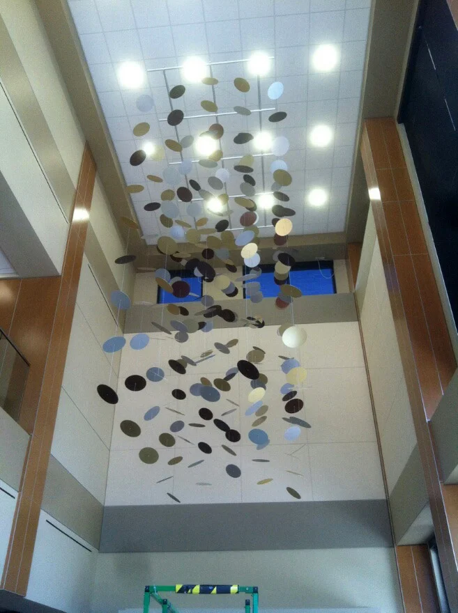 The kiddos at Lee Elementary wrapped up the school year with a grand unveiling of the mobiles we worked with them to create. Various groups of students created mobile designs, and the entire school held a vote to decide on the final two designs, which we then built for them.