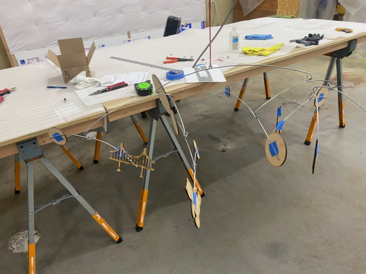 The powder-coated shapes for the Children’s Hospital of Georgia Mobile have arrived! We’re loving the client’s cheerful color selections. The mobile is safely packed up for its cross country journey. We’ll install in April.